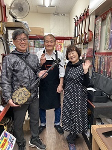 愛知県から観光でお越しのお客様人工皮三線セットをお買い上げいただきました。