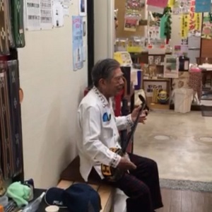 人間国宝照喜名朝一さん、のうれんプラザにお買い物のして、当店にお越しいただき三線を弾いて帰りました。照喜名朝一さん2022年 (令和4年)9月10日お亡くなりになりました。謹んでお悔やみ申し上げます。
