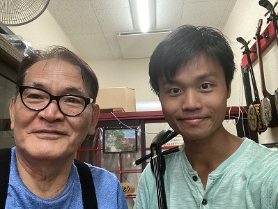 香港から観光でお越しのお客様人工皮三線セットをお買い上げいただきました。